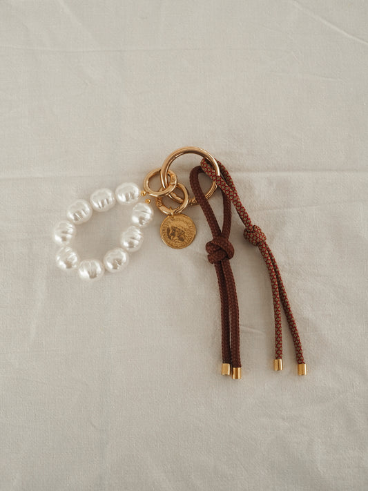 1/ Porte-clés Grigri rose et marron
