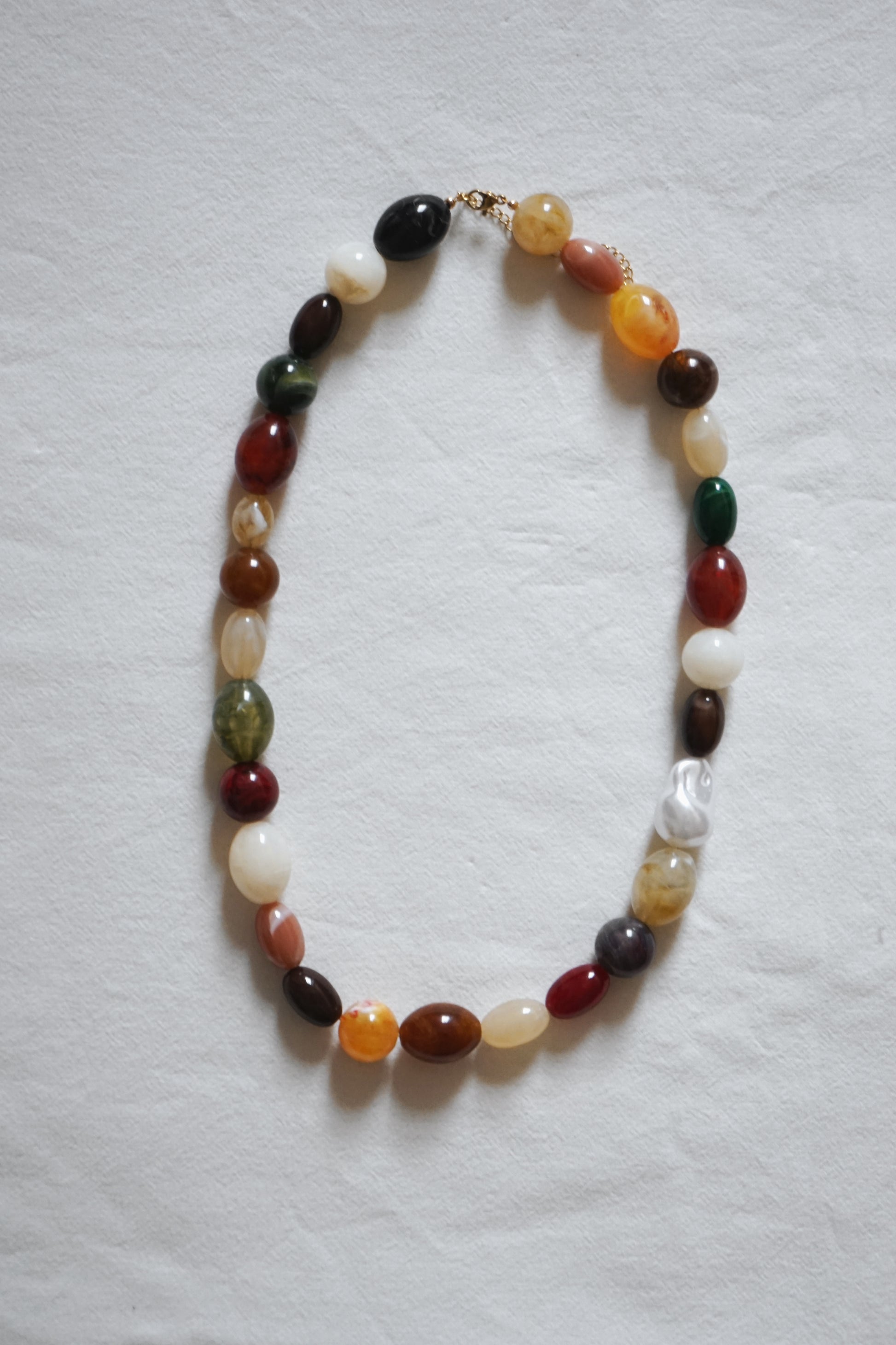 Collier avec des maxi perles en acrylique de différentes couleurs automnales.