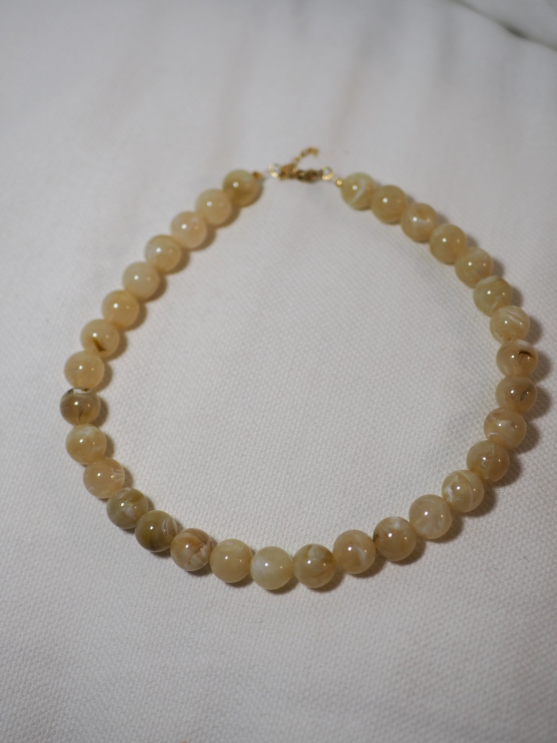 Collier ras de cou avec des perles en acrylique, disponible en beige et marron.